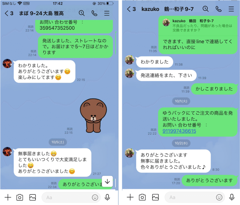 商品到着後のご相談や万が一のトラブルも、LINEから迅速にサポートいたします。